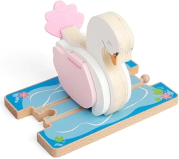 Løft svanens lyserøde vinger og forvandl den til en tunnel. Børn vil elske det enkle, men magiske mekaniske element, der liver hver tur op.