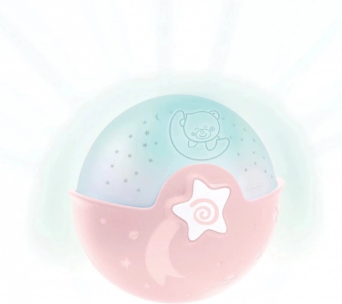 Projektoren aktiveres ved at trykke på knappen "ON". Den viser farvede stjerner og afspiller 6 forskellige melodier og 3 naturlyde. Derudover har den justerbar lydstyrke, som kan indstilles til: høj, lav eller slukket. Slukker automatisk.