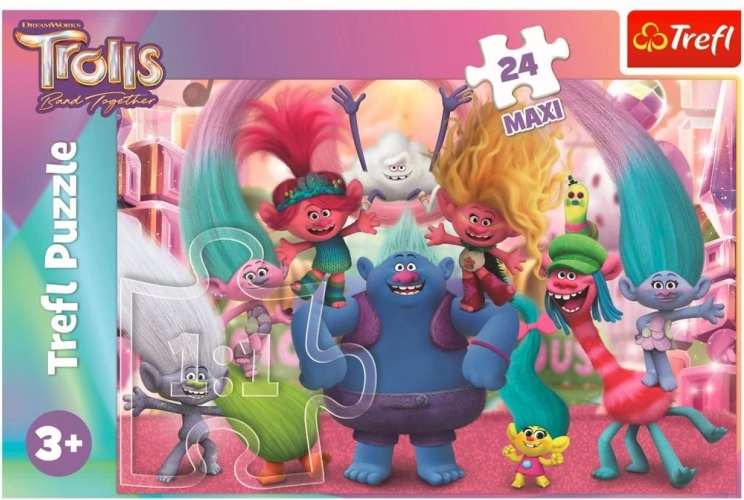 Børnevenligt maxi puslespil med 24 brikker med motiv af TROLLENE er ideelt til børn fra 3 år. Store brikker gør det lettere at lægge, og udvikler finmotorik og opmærksomhed. Fremstillet af miljøvenlige materialer og lærredslamineret papir, som ikke reflekterer lys for en behagelig og sikker leg.