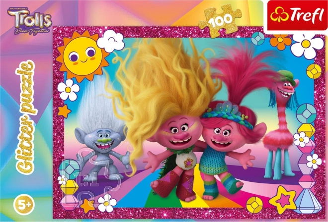 Det glade glitrende puslespil TROLLS 3 med 100 brikker vil glæde alle små elskere af glans og farver. Takket være de fine glimmerdetaljer skinner billedet efter samling og kan blive en smuk dekoration til børneværelset. Ideelt til at udvikle tålmodighed, finmotorik og visuel fantasi.
