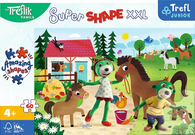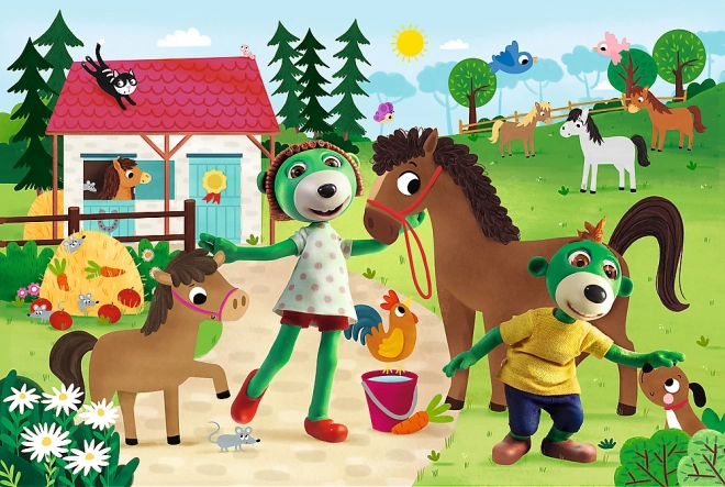 Sjovt børnepuslespil med motivet TREFLÍCI på hestefarmen, som vil glæde alle små puslespilsfans. De store XXL-brikker er lette at gribe og ideelle til børn. Når det er samlet, bliver billedet 60 × 40 cm og styrker motorik, tålmodighed og logisk tænkning.
