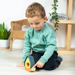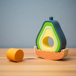 Oplev et kreativt balancespil, der udvikler finmotorik, tålmodighed og koncentration. Børn kan skille avocadoen ad, samle den igen i forskellige former og træne stabilitet, når den vipper på træbasen.