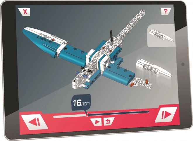 Byggesættet formidler principperne for mekanik og ingeniørkunst på en underholdende måde og styrker koncentration og logisk tænkning. Når du scanner QR-koden, får du adgang til video, interaktive 3D-vejledninger og flere modeller i den ledsagende app (App Store, Google Play).