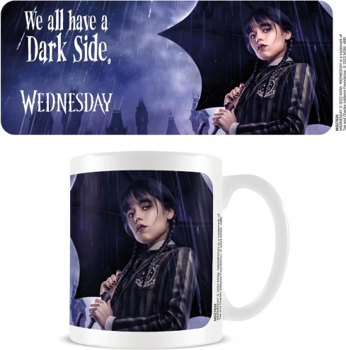 Stilfuldt keramisk krus med motiv af Wednesday og citatet “We all have a Dark Side” gør hverdagskaffen eller -teen til en fornøjelse. Det har en kapacitet på 315 ml, er egnet til mikroovn og opvaskemaskine og leveres i en gaveæske.