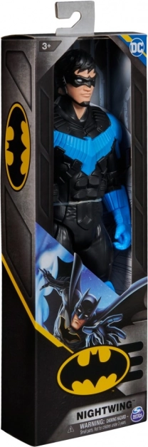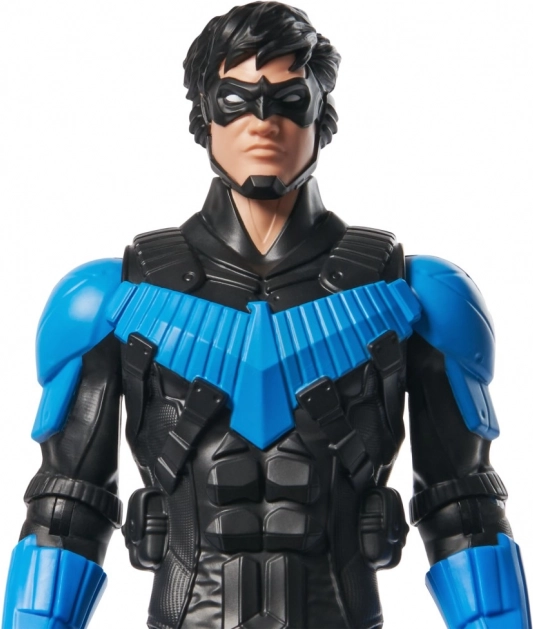 Nightwing-figuren er omhyggeligt fremstillet med fokus på detaljerne, inklusive den karakteristiske sorte og blå dragt.