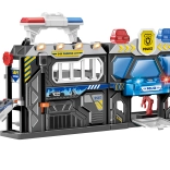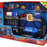Sjovt og praktisk legetøj til små politibetjente: en bærbar politistation med målene 56 × 18 × 23 cm, der tilbyder lys- og lydeffekter, aktivering via knap på det blå panel og masser af tilbehør. Inkluderer 2 biler med frihjul, trafikskilte, brandslukker, vaskehal, tankstation, diagnostik og mere. Batterier 3× AG13 medfølger.