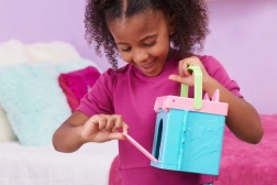 Gør Gabby klar til stjernefotos ved toiletbordet med spejl, tre stilfulde parykker og to stativer. Vælg mellem to outfits i skabet med bøjler og skuffer, stil dukken på den dreiende scene og sæt gang i catwalken. Når dagen er omme, lægger du alt tilbage, lukker og tager det med ved det praktiske håndtag.
