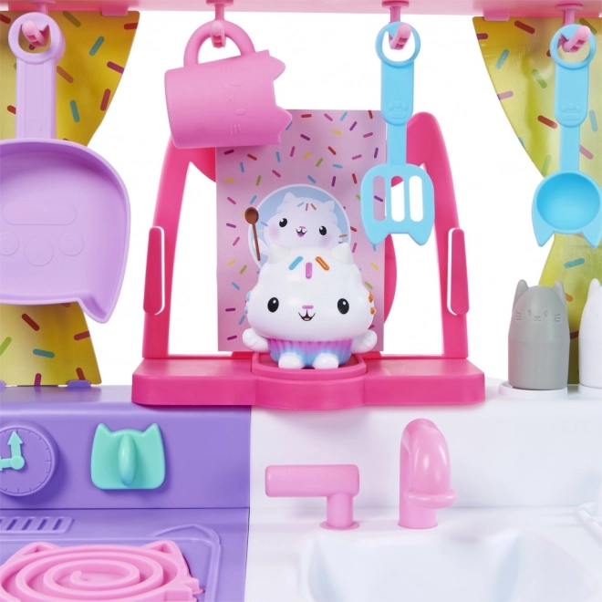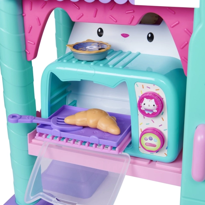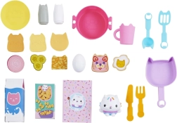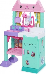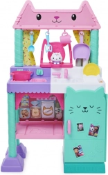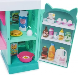Vi præsenterer Cakey Cat Kitchen-køkkensættet til børn fra Gabbys magiske hus. Dette legekøkken er et fantastisk supplement til legetøjsserien Gabbys magiske hus for både piger og drenge, med mere end 20 køkkenaccessories og en højde på over 91 cm. Cakey Cats køkken er udstyret med komfur, vask med afdrypningsbakke, 10 køkkentilbehør og service, knager over vinduet, 9 lege-madvarer og et køleskab med billeder af Gabby og hendes katte, hvor du kan opbevare lege-mad, tilbehør og andre legetøj. Det smukke legekøkken indeholder også en stor figur af katten Cakey med et specialstativ, der kan fastgøres på vinduet, så Cakey kan holde øje med dine kulinariske kreationer. Tryk på knappen på Cakeys stativ og drej på komfurknapperne for at aktivere mere end 20 lyde og sætninger samt 9 madlavningseffekter, 3 musiknumre og 11 Cakey-replikker fra den populære serie Gabbys magiske hus på Netflix. Hvis du vil udvide det lille køkken yderligere, er der en hylde under komfuret, som er designet specifikt til ovnen Bakey with Cakey Oven (sælges separat). Cakey Cats køkkenlegesæt er et uundværligt tilbehør for alle fans af Gabbys magiske hus, som dermed kan genskabe scener fra deres yndlings madprogrammer eller lave deres egne kulinariske kreationer til familie og venner.