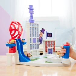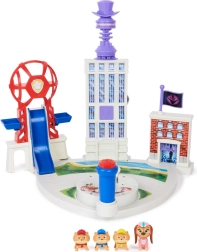 Gør jer klar til at redde Adventure City med Liberty og Hvalpeholdet! Borgmester Humdinger og Vee har noget i gære, og det er op til Liberty og Hvalpeholdet at stoppe dem! Dette sæt indeholder et minitårn fra PAW Patrol og forskellige mål i horisonten over Adventure City. Det er op til dig, med hjælp fra din trofaste hvalpekaster fra Hvalpeholdet, at standse Vee og borgmester Humdinger og redde dagen! Start med at placere et af medlemmerne af Hvalpeholdet på startpladen. Når det er klar, træk tilbage og drej hvalpekatapulten til venstre og højre for at sigte mod 3 forudbestemte mål! Ved at trykke på den røde knap på kasterens håndtag affyrer du en af hvalpene mod den kæmpe højhat-ikon på den højeste bygning, hvorefter en stor grafik af borgmester Humdinger dukker op. I det øjeblik affyrer du den anden hvalp for at slå ham af vejen! Når første del er fuldført, sætter du den tredje hvalp i kasteren, sigter mod toppen af bygningen helt til højre og forsøger at ramme den for at få fængselscelledørene foran bygningen til at falde og fange Vee! Fuldfør alle tre dele og red dagen! Det er super sjovt! Dette underholdende legesæt indeholder også en kæmpe rutsjebane med rampe foran PAW Patrol-tårnet, præcis som i filmen, samt et kontrolrum og flere legeområder, hvor du kan genskabe dine yndlingsscener fra PAW Patrol: The Mighty Movie! Med legetøj fra PAW Patrol-universet kan børn udvikle fantasi og motoriske færdigheder, mens de oplever deres yndlingsøjeblikke fra filmen! For endnu sjovere og mere spændende missioner inspireret af PAW Patrol, saml alt legetøjet fra filmene, såsom det fantastiske kommandoflybæreskib, og alle specialudgaverne til både piger og drenge, som figurer og legesæt fra Mighty Pups, Aqua Pups og Big Truck Pups (hver sælges separat). Nyd endeløse eventyr med Liberty og Hvalpeholdets legesæt fra PAW Patrol: The Mighty Movie!