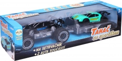 Denne robuste trækker med personbil giver masser af sjov for børn, der elsker biler og fart. Begge køretøjer er udstyret med friktionsmotor, så det er nok at give et skub, og de kører selv. Takket være de kompakte mål er sættet velegnet til leg både hjemme og på farten.