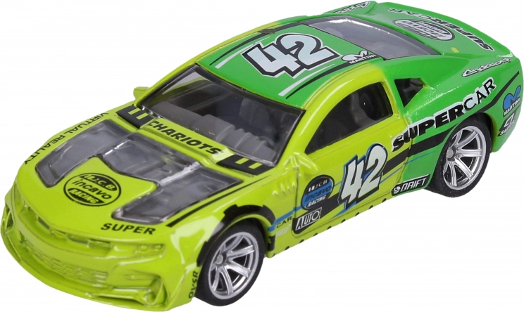 Kompakt metalbil på 7 cm, perfekt til små racerkørere og samlere. Den byder på robust metaludførelse, friløbshjul for jævn kørsel og et udvalg af 4 farvevarianter – hvid, gul, grøn og sort.