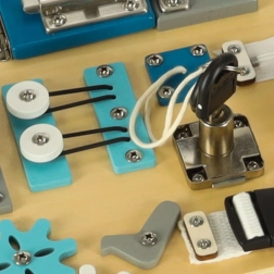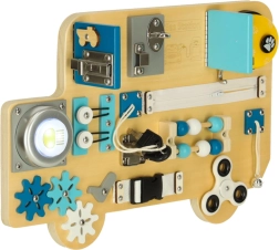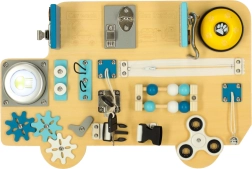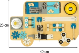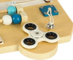 Leg med pladen udvikler øje–hånd-koordination, træner koncentration og styrker dagligdags færdigheder – fra at lyne en lynlås til at bruge nøgle og lås. Takket være de holdbare materialer er pladen et godt valg til både hjemmet og legehjørnet.
