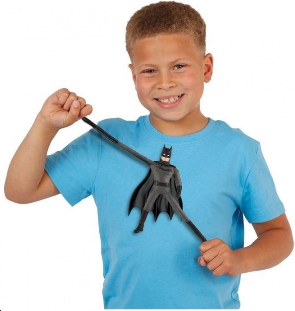 Batman, superhelten der bekæmper kriminalitet, er tilbage i en strækbar udgave! Figuren er meget elastisk og holdbar. Tag fat i figuren ved hænder og fødder og træk! Se, hvor fantastisk figuren kan strækkes! Figuren er 17 cm høj og kan strækkes op til 68 cm! Når du slipper figuren, udnytter den sine fantastiske egenskaber og vender langsomt tilbage til sin normale form.