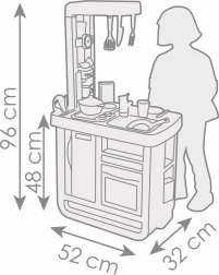 Det fås i bløde pastelnuancer, der harmoniserer med ethvert interiør. Forældre og børn vil glæde sig over det rige køkkenudstyr, som omfatter en komfur med 2 blus, en ovn med åbningsdøre, køleskab, vask med hane og kaffemaskine. Den elektroniske lydmodul understøtter realismen i legen med madlavningslyde, hvilket giver børn endnu større nydelse.