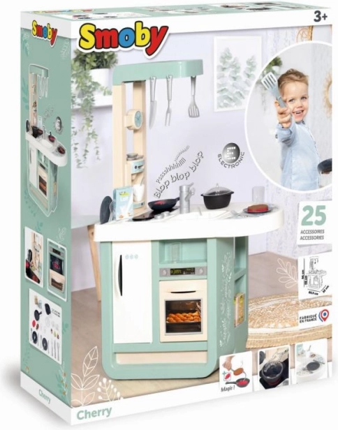 Køkken Bon Appetit Cherry er et børnekøkken, der tilbyder moderne design og en bred vifte af tilbehør. Med sin milde pastelfarve er det ideelt til både børneværelset og stuen. Børn kan lege kokke med varme kogeplader, ovn og emhætte, der giver elektroniske lyde af madlavning.
