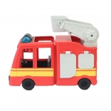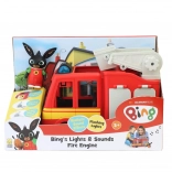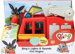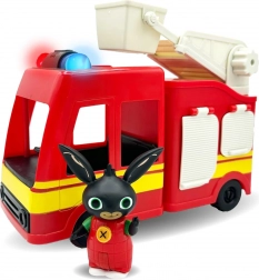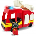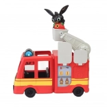 Med følger en sød Bing-figur, som kan tages med på indsats. Bilen har frit rullende hjul og en hævbar stige med platform, så børn kan øve redning og koordination.
