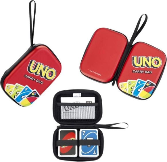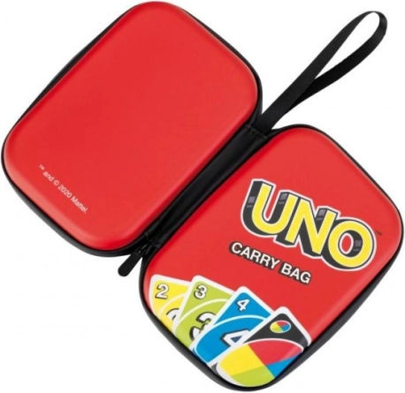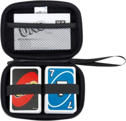 Organiser dine UNO-kort med dette praktiske rejseetui. Det sikrer, at du altid har kortene ved hånden og sikrer dem mod fugt. Tasken er udstyret med en indvendig netlomme, som er perfekt til opbevaring af spillevejledningen.