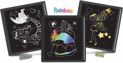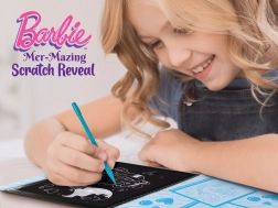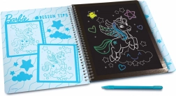Oplev farvernes magi med Barbie i en betagende fantasystil takket være skrabbe-skitsebogen. Brug den medfølgende pen til at afsløre de livlige regnbuefarver, som er skjult under den sorte overflade.