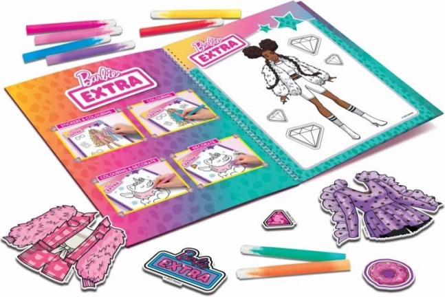 Oplev sjov og inspiration med Barbie skitsebogen, hvor siderne indeholder modeller klar til dine modedesigns. Med modeklistermærker kan du skabe dine egne stilfulde kreationer uden grænser.