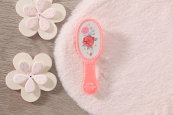 Dukken Sophia har kvalitetsblondt hår, som let kan styles og redes med den lyserøde børste.