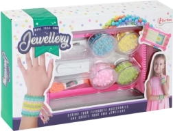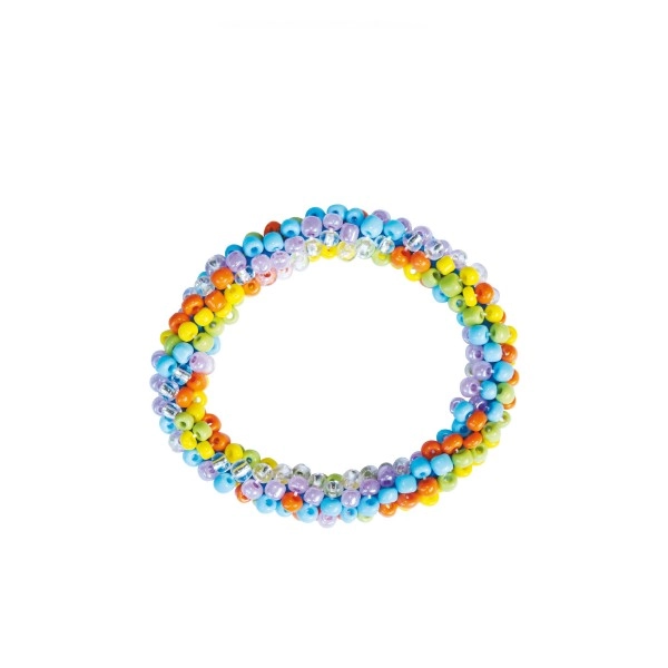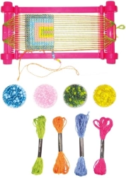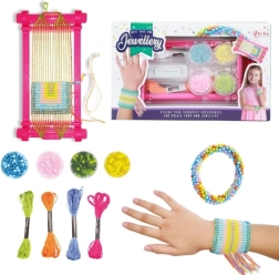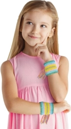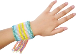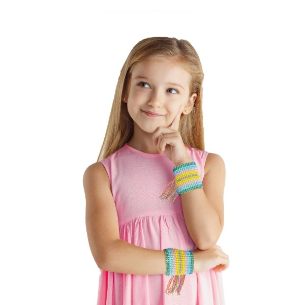 Flet dit eget armbånd, der passer til dit outfit. Fantastisk underholdning i fritiden. Skab et virkelig originalt smykke, som ingen andre har! Sættet indeholder 4 farver bomuldstråd, 4 farver perler og en væveramme.