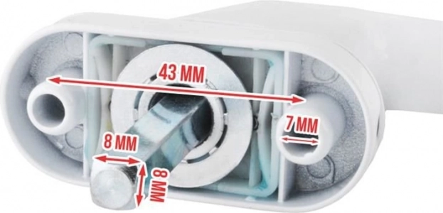 Kombinationen af metal og kvalitetsplast sikrer lang levetid og stabilitet. Den hvide overflade passer til moderne vinduer og interiører.