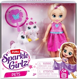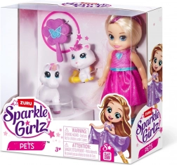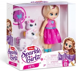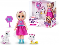 Oplev den magiske Sparkle Girlz-verden! Denne dukke i en smuk kjole med glitrende detaljer og langt hår er ideel til hverdagsleg. Med det medfølgende kæledyr og tilbehør kan børn skabe deres egne historier og udvikle både finmotorik og sociale færdigheder.