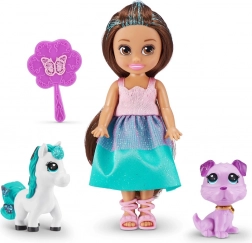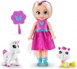 Hvert sæt indeholder en dukke med rigt dekoreret outfit, et til to søde dyr (fx enhjørning, pony eller killing) og tematisk tilbehør som en kam eller et magisk spejl formet som en sommerfugl. Den kompakte størrelse passer perfekt til både rejser og børneværelset.