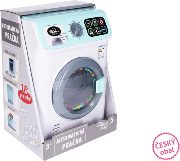 Sjov børnevaskemaskine med realistiske funktioner, der forvandler hver vask af dukketøj til leg. Den tilbyder lys- og lydeffekter, roterende tromle, valg af program og temperatur samt skuffe til vaskepulver. Ideel til børn fra 3 år, med batterier inkluderet.