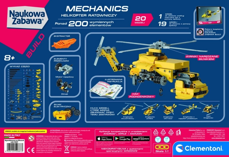 Pakken indeholder adgang til en gratis app med interaktive 3D-vejledninger, der trin for trin guider dig gennem byggeriet. Byg op til 10 forskellige modeller og afprøv 10 tekniske løsninger, fra rotor-mekanismer til en funktionsdygtig spil og haleror. Høj kvalitet og produktion i Italien sikrer lang levetid og præcise dele.