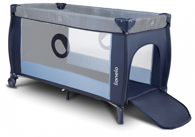 Praktisk og sikker rejseseng til børn med sideindgang med lynlås, justerbar madras i to højder, puslebord og rigt tilbehør for bekvem rejse. Takket være LockGuard-systemet, den kvalitets bløde madras og hjul med bremse er sengen stabil og let at manøvrere. Inkluderer myggenet, håndtag til at lære at rejse sig og sideorganizer.