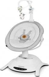 Alle gyngefunktioner er nemme at betjene takket være et touchpanel eller fjernbetjening. 12 melodier og en uafhængigt roterende bøjle med legetøj sørger for underholdning og stimulerer barnets sanser.