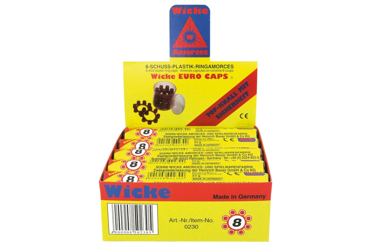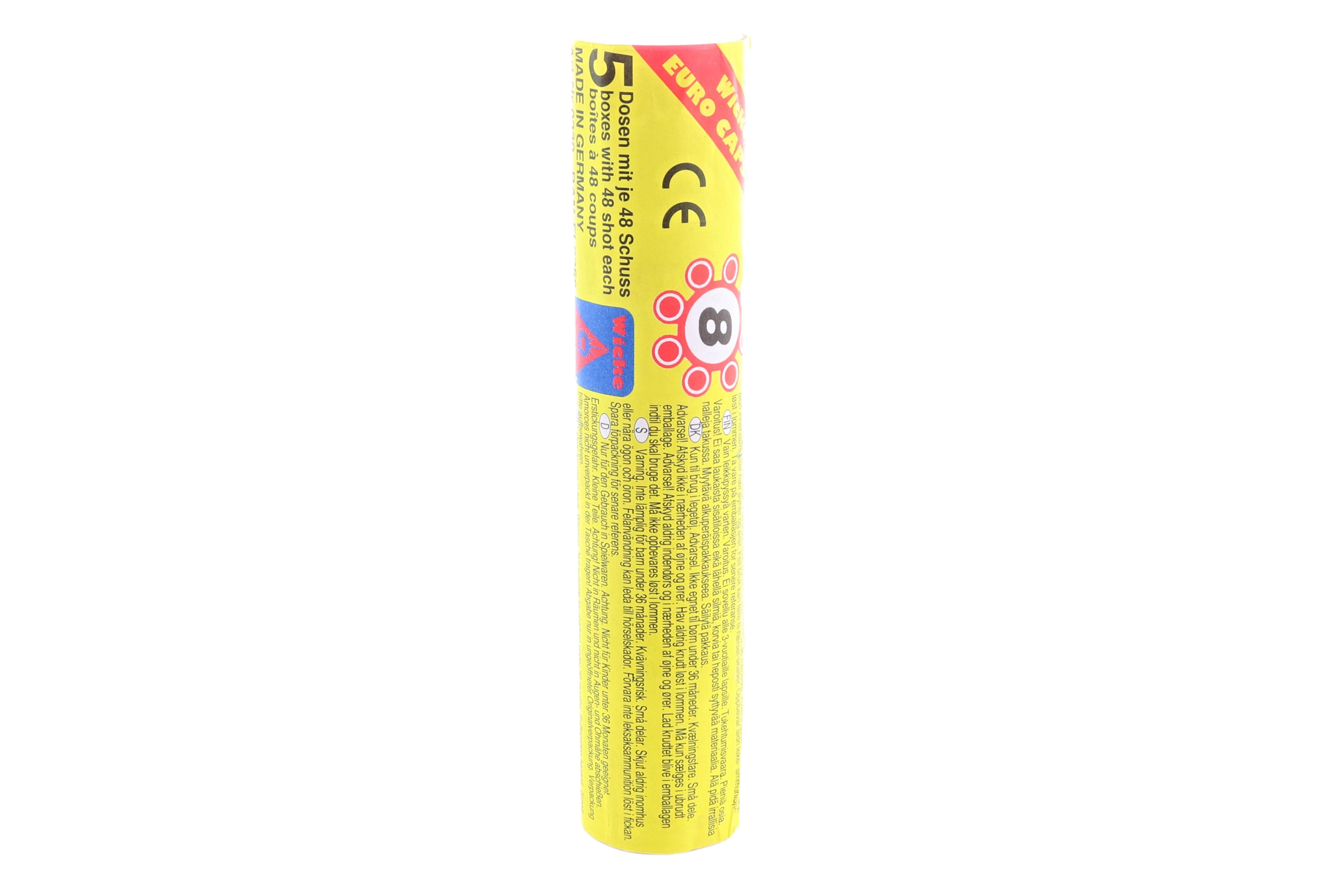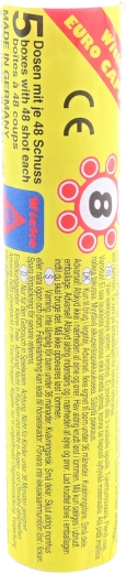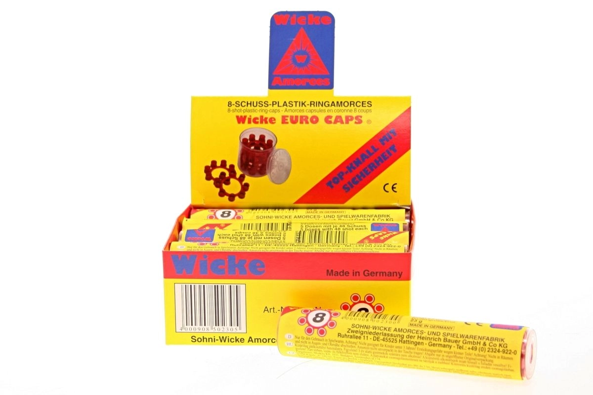 Praktisk sæt kapsler til legetøjspistoler med i alt 48 ringe med 8 skud i en robust plastdåse. Ideel til langvarig leg, nem transport og sikker opbevaring. 48 ringe, 8 skud pr. ring, plasttub, alder 3+.