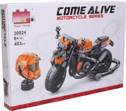 Byg din egen motorcykel og fuldend den med en stilfuld hjelm! Dette byggesæt tilbyder 403 dele til kreativ underholdning, detaljeret udførelse af en motorcykel på 17 cm og en hjelm på 5,6 cm. Ideelt til børn fra 6 år og begyndere i byggeri.