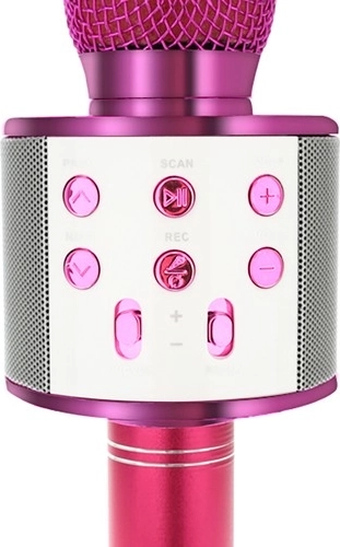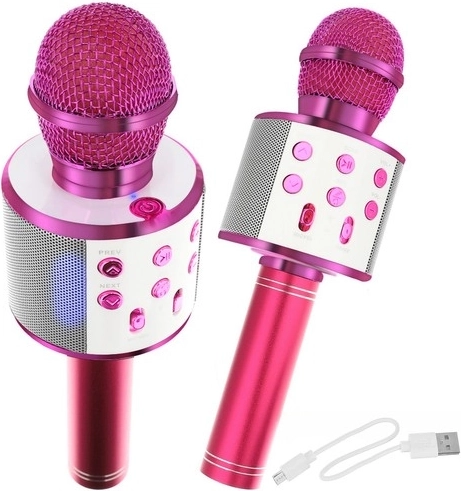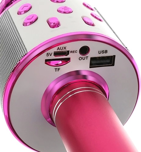 Denne multifunktionelle karaokemikrofon i elegant rosa kombinerer mikrofon og kraftig højttaler i én. Du kan nemt parre den via Bluetooth 4.0 eller tilslutte med kabel og afspille musik, synge, optage podcasts eller streame. Takket være støjreduktion lyder stemmen klar, og effekterne Bass, Sopran og Echo giver din performance et professionelt præg.