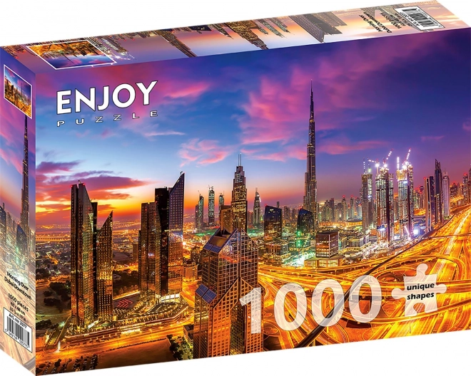 Elegant ENJOY-puslespil med motiv af daggry over Dubai med 1000 brikker fulde af detaljer. Nyd afslapning ved at lægge puslespil, mål ca. 68 × 48 cm og et smukt bypanorama.