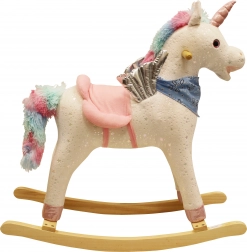Denne charmerende gyngende enhjørning med regnbueelementer er den ideelle ledsager til børn, der elsker fantasi og aktiv leg. Takket være de solide træmeder og det komfortable sæde er gyngningen sikker og stabil, mens den bløde plys indbyder til kram.