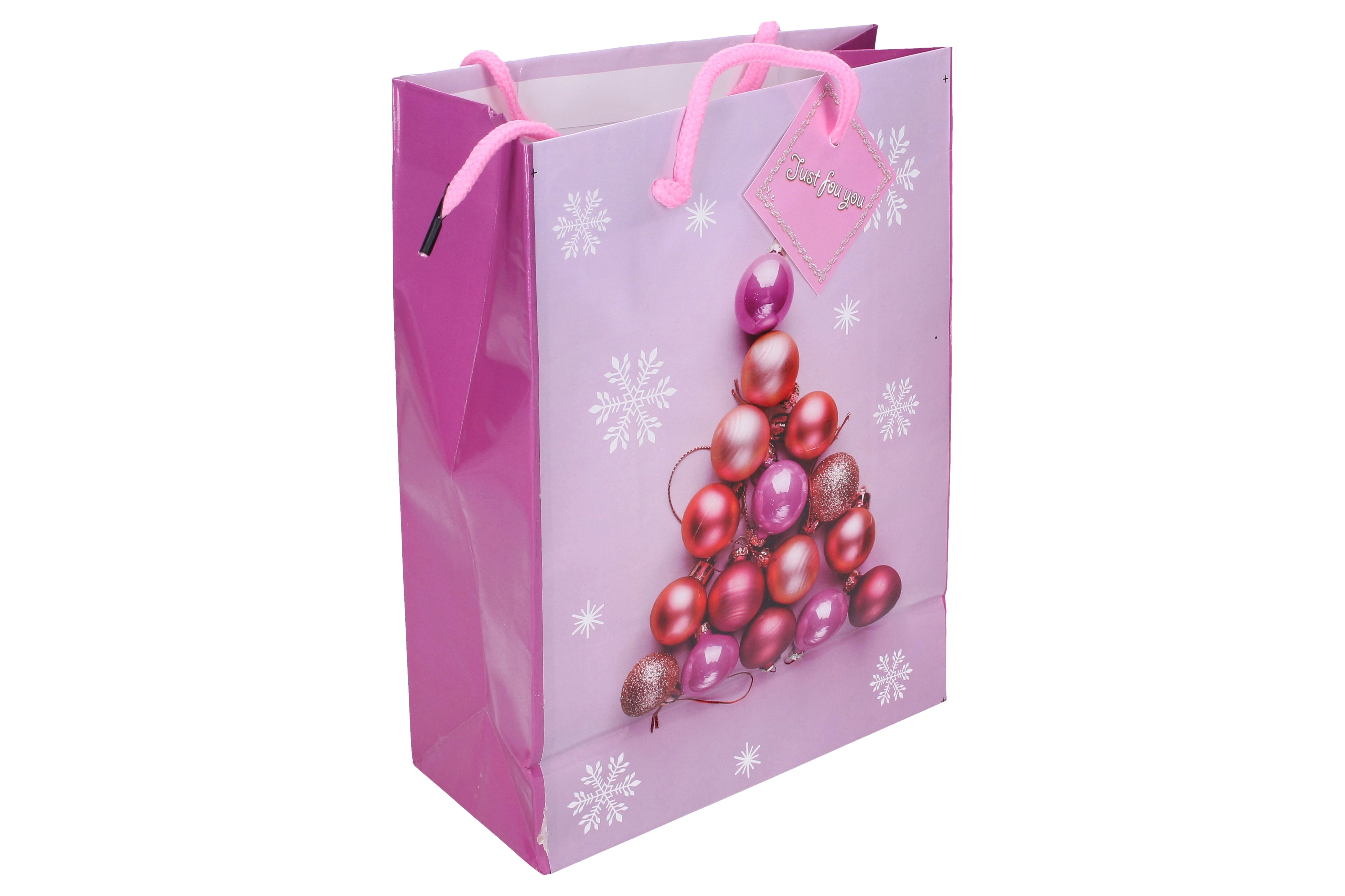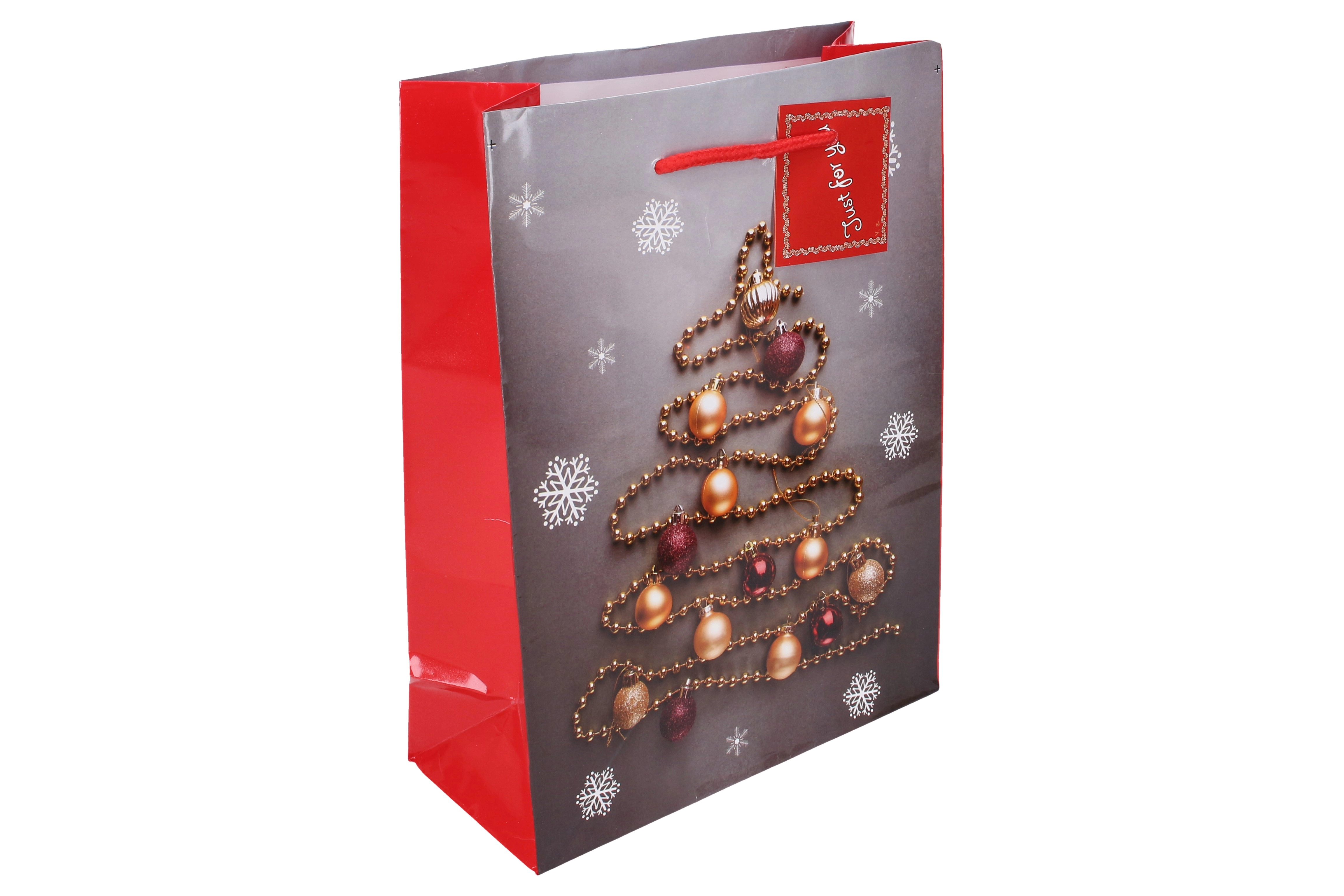 Denne stilfulde julepose fås i fire farvevarianter, hvilket gør den til et glimrende valg til enhver lejlighed. Dens mellemstørrelse er ideel til indpakning af gaver, fra mindre over mellemstore til større overraskelser.