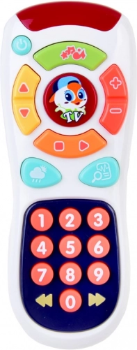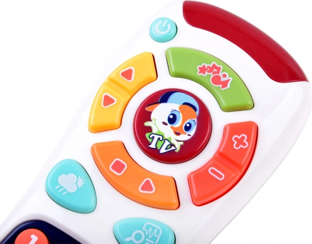 Fjernbetjeningen tilbyder tænd/sluk, melodier og lyde, lydstyrkekontrol, kanalskift og tilstandsskift. Takket være de engelsktalende funktioner lærer barnet legende de første ord og udvikler finmotorik og sanseopfattelse.