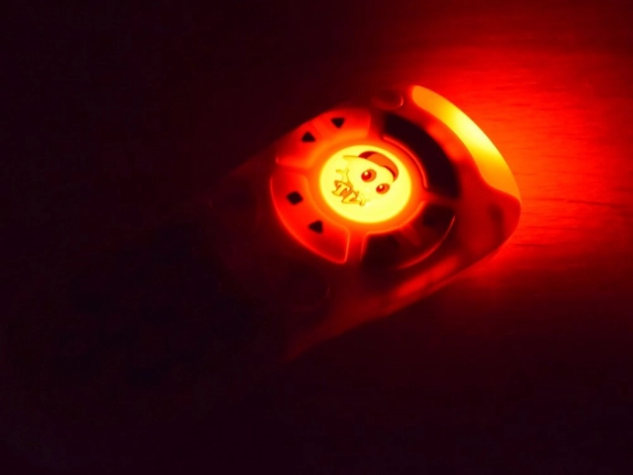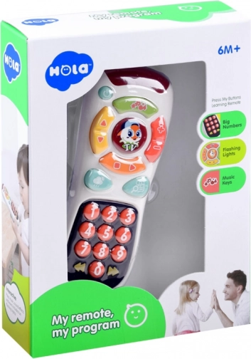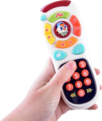Fjernbetjeningen afspiller melodier og lyde; det lysende billede fanger opmærksomheden. Med knapper til at skrue op/ned kan du tilpasse lydstyrken.