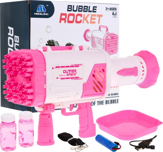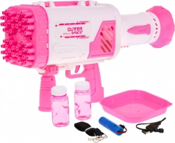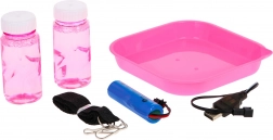 Denne sæbeboblepistol forvandler enhver eftermiddag til et eventyr. Hæld væsken i den medfølgende skål, dyp hovedet og tryk på aftrækkeren – på et øjeblik myldrer der smukke farverige bobler frem. Takket være LED-belysningen ser boblerne endnu mere magiske ud, især i dæmpet lys.