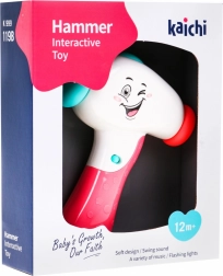 | | Den farverige interaktive hammer er et legetøj designet til børn fra 12 måneder. Hammeren har et sjovt design og er udstyret med lys- og lydeffekter. Ved hvert slag aktiveres melodier og forskellige lyde, og lyset på toppen af legetøjet blinker. Legetøjet drives af 2 x AA-batterier, som er inkluderet i pakken. Brug af denne hammer af dit barn påvirker positivt dets sanseudvikling og understøtter motorik, kognitive evner og hånd‑øje‑koordination. Legetøjets funktioner: - lyd, - lys, - læring og formgivning. | Dimensioner | |