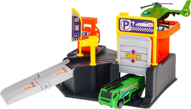 Dette farverige plastiksæt forvandler værelset til et lille trafikknudepunkt. Det to-etagers parkeringshus med ramper og helipad suppleres af en overskuelig måtte med by og veje, hvor børn kan køre med bilen og lande med helikopteren. Takket være de kompakte mål passer det nemt på børneværelset og er hurtigt at rydde op.