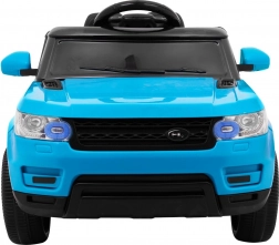 Stilfuld elektrisk SUV-legetøjsbil i blå, der tilbyder sikker sjov både inde og ude. To motorer 2 × 30 W, 2,4 GHz fjernbetjening med tre hastigheder og STOP-knap, for- og bageste LED-lys samt et rigt audio-panel MP3/USB/SD/AUX glæder både små chauffører og forældre. Åbningsbare døre med lås, seler og fire støddæmpere for en komfortabel kørsel.