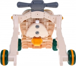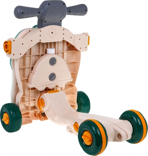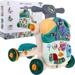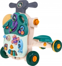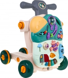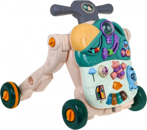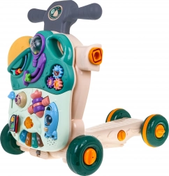 Dette interaktive 5-i-1 legetøj vokser med dit barn og tilpasser sig dets behov. Du kan nemt forvandle det fra gåvogn til løbecykel eller løbehjul og på et øjeblik til et stabilt aktivitetsbord med et sensorisk panel i rumtema. Farverige elementer, knapper, gear og perler indbyder til udforskning og støtter finmotorik, logisk tænkning og sanseopfattelse.