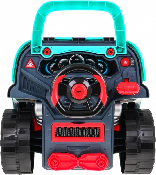 Indeholder 61 dele, herunder hjul med kapsler, skruer, værktøj og reservedele til motoren. Det praktiske rum under rattet rummer alle småting og tilbehør, og legetøjet har også et bærehåndtag for nem transport. Ideelt til børn fra 3 år, som vil udforske, hvordan en bil fungerer, og udvikle færdigheder og fantasi.