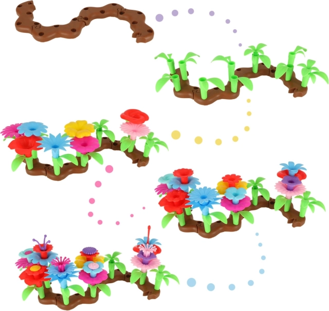 Med det kreative byggesæt kan børn frit udtrykke deres fantasi og skabe smukke buketter eller haver.
