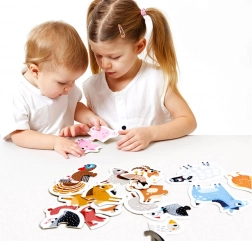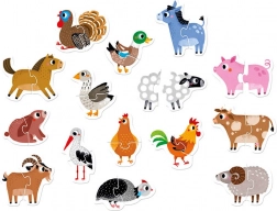 Legende læring gennem puslespil styrker tålmodighed, fokus og ordforråd. Børn kan navngive dyrene, lære farver og kropsdele, efterligne dyrelyde og finde på egne historier om livet på gården. Brikkerne er store og lette at gribe, så puslespillet er perfekt som det første sæt til tumlinger fra 18 måneder.