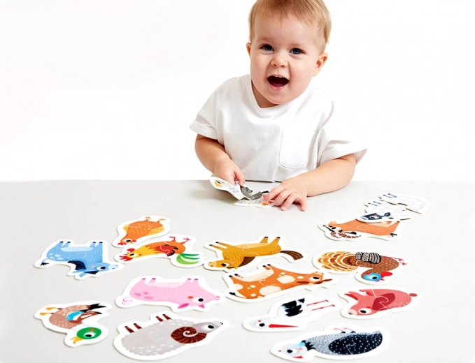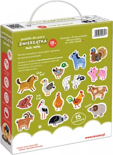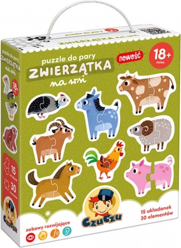 Det første læringspuslespil for de mindste: CzuCzu todelte puslespil med gårddyr udvikler finmotorik, koncentration og opmærksomhed. I æsken finder du 15 søde dyr, hver sammensat af 2 store brikker, ideelle til små børnehænder. Et godt valg som gave og en første introduktion til puslespil.