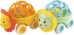 Sød plast-rangle formet som en lille bil med dyr – den ideelle første legeting til babyer fra 3 måneder. Den er let at gribe om, vejer lidt og ruller blidt takket være frihjul. Understøtter finmotorik, sansemæssig perception og den første hånd–øje-koordination. Fås i to farvevarianter.